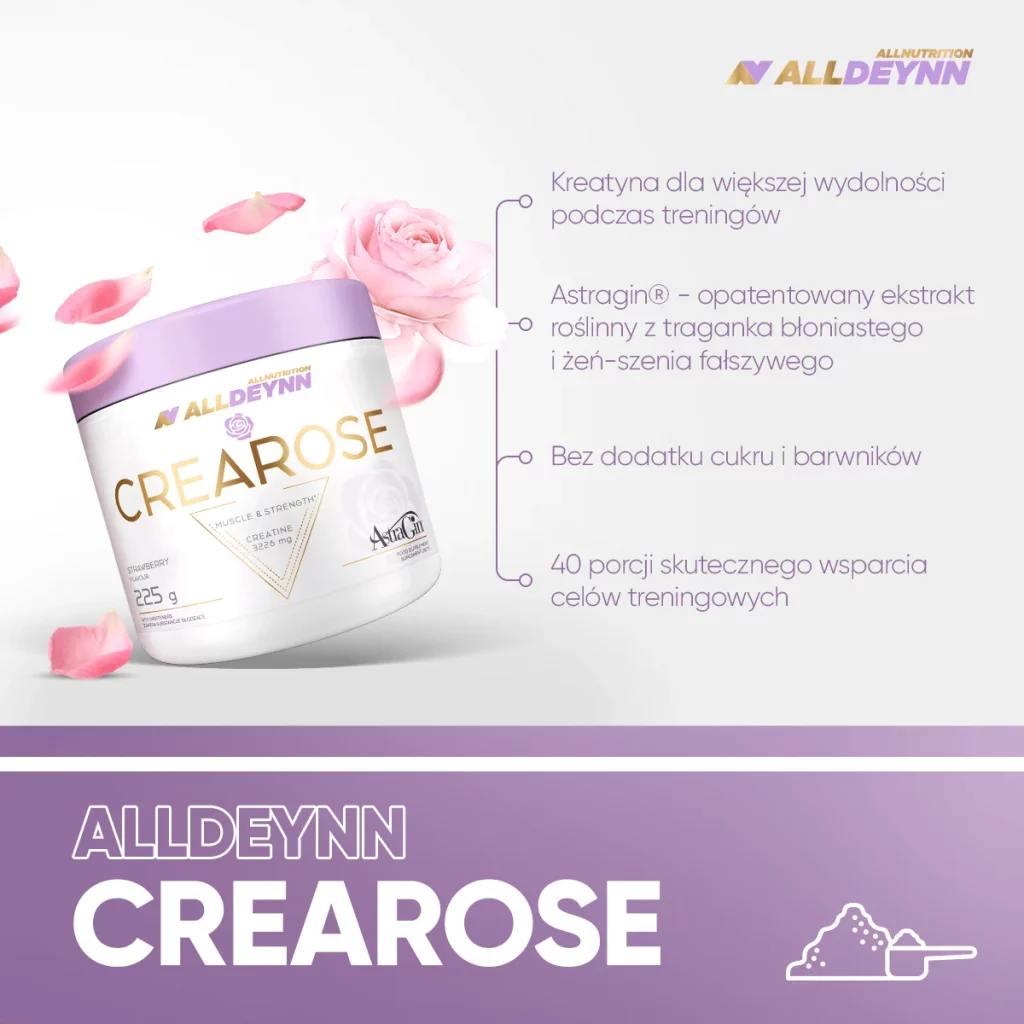 Ta kreatyna dla osób poszukujących bardziej kompleksowej formuły zawiera 3666 mg monohydratu kreatyny, w tym 3226 mg czystej kreatyny, oraz 30 mg opatentowanej mieszanki roślinnej AstraGin®. Dodatek ekstraktów z żeń-szenia i traganka błoniastego czyni formułę interesującą dla osób zwracających uwagę na biodostępność. Produkt wyróżnia się kobiecym designem, truskawkowym smakiem i przyjemną konsystencją. Połączenie kreatyny z naturalnymi ekstraktami może być atrakcyjne dla osób stawiających na synergię składników w diecie. Suplement uzupełnia codzienną rutynę kreatynową o element adaptogennej roślinności.